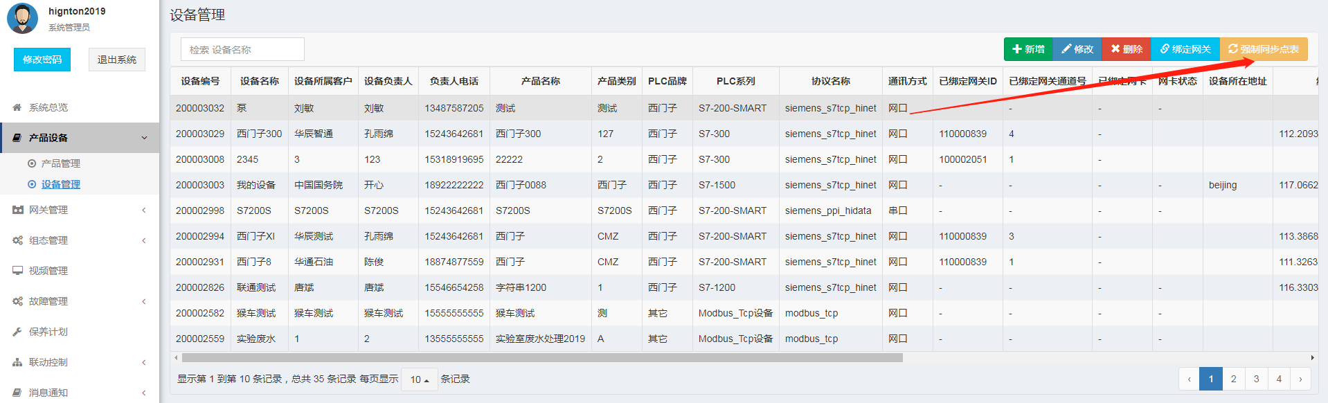 1. 是否强制同步点表,以思普云平台采集数据为例,思普云平台的设备管理处,选择设备点击【强制同步点表】。