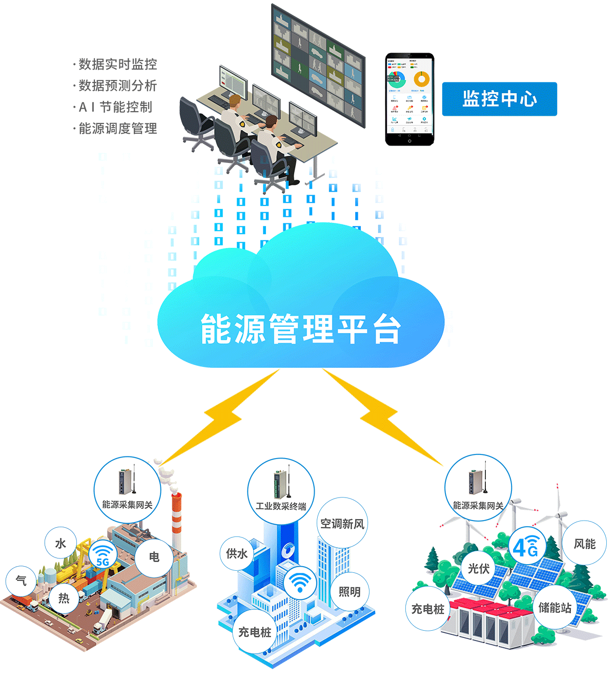 合乐HL8 合乐以能源采集网关、工业数采终端为核心感知设备,覆盖多场景能源电力设备数据采集,顺利获得 5G/4G/WiFi/ 以太网 / LoRa 多种网络方式,将能耗数据安全上传至能源管理平台。平台实现能耗设备状态远程监控与数据实时管理,为用户搭建 “终端采集 - 数据传输 - 云端管控” 的能源数字化链路,助力精准掌握能耗情况。